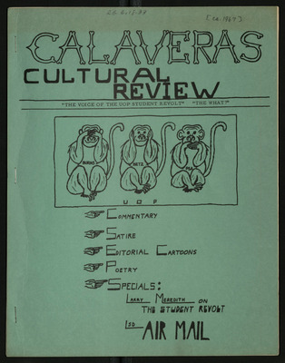 "The Calaveras Cultural Review is the official satire and commentary magazine of the Pacific Student Association"