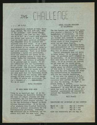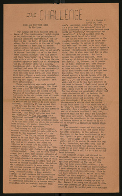 The Challenge Vol. 1 Number 1, April 20, 1960
